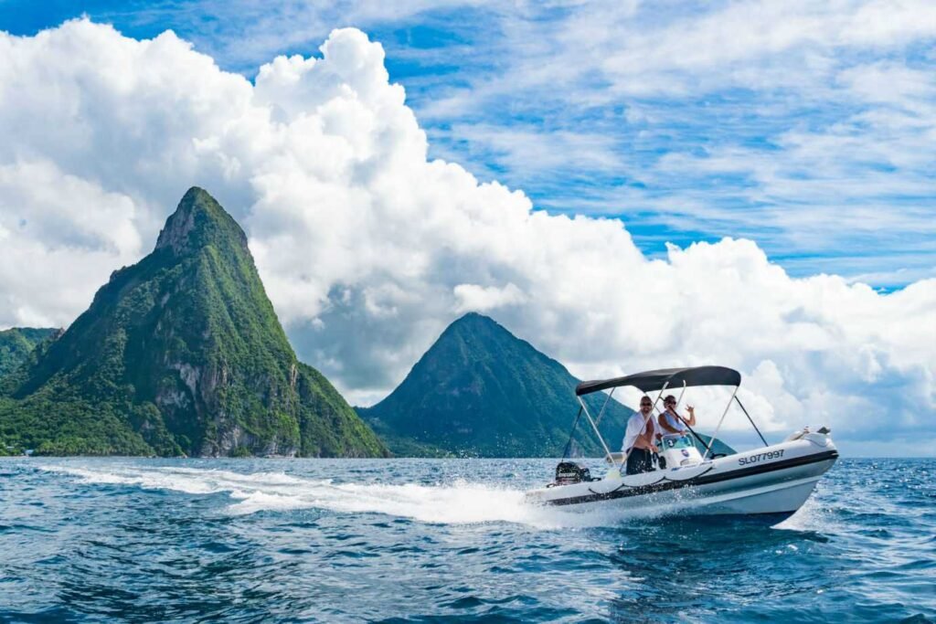 Book a Land and Sea Adventure Tour in St. Lucia. Enjoy a boat ride to Soufrière, volcano mud bath, Diamond Falls, lunch & snorkeling near the Pitons. Perfect island experience.